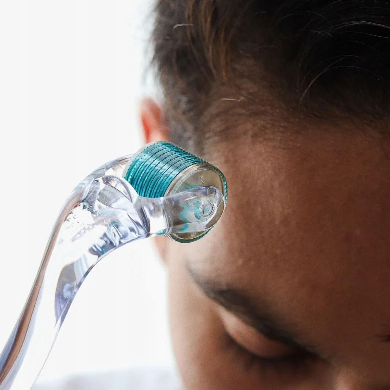 Foligain Hair and Scalp Roller is a dermaroller for the scalp with 540 titanium needles (0.25 mm) that stimulates microcirculation, exfoliates dead skin cells and improves the absorption of serums and hair growth products. The cross-grid needle arrangement ensures even, painless stimulation of the entire scalp. Suitable for women and men.