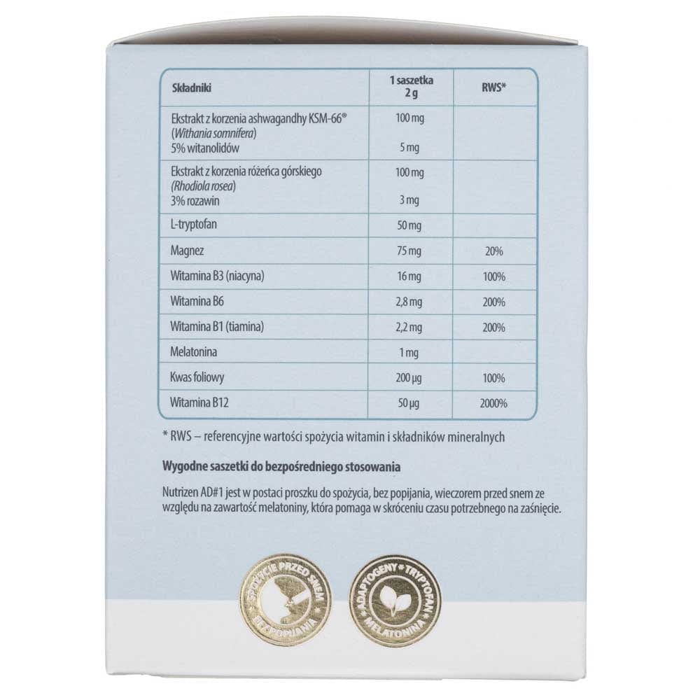 Nutrizen AD 1 is a dietary supplement containing a carefully selected complex of adaptogens, tryptophan and melatonin enriched with B vitamins and magnesium to help maintain normal psychological functions, fall asleep faster and reduce feelings of fatigue.