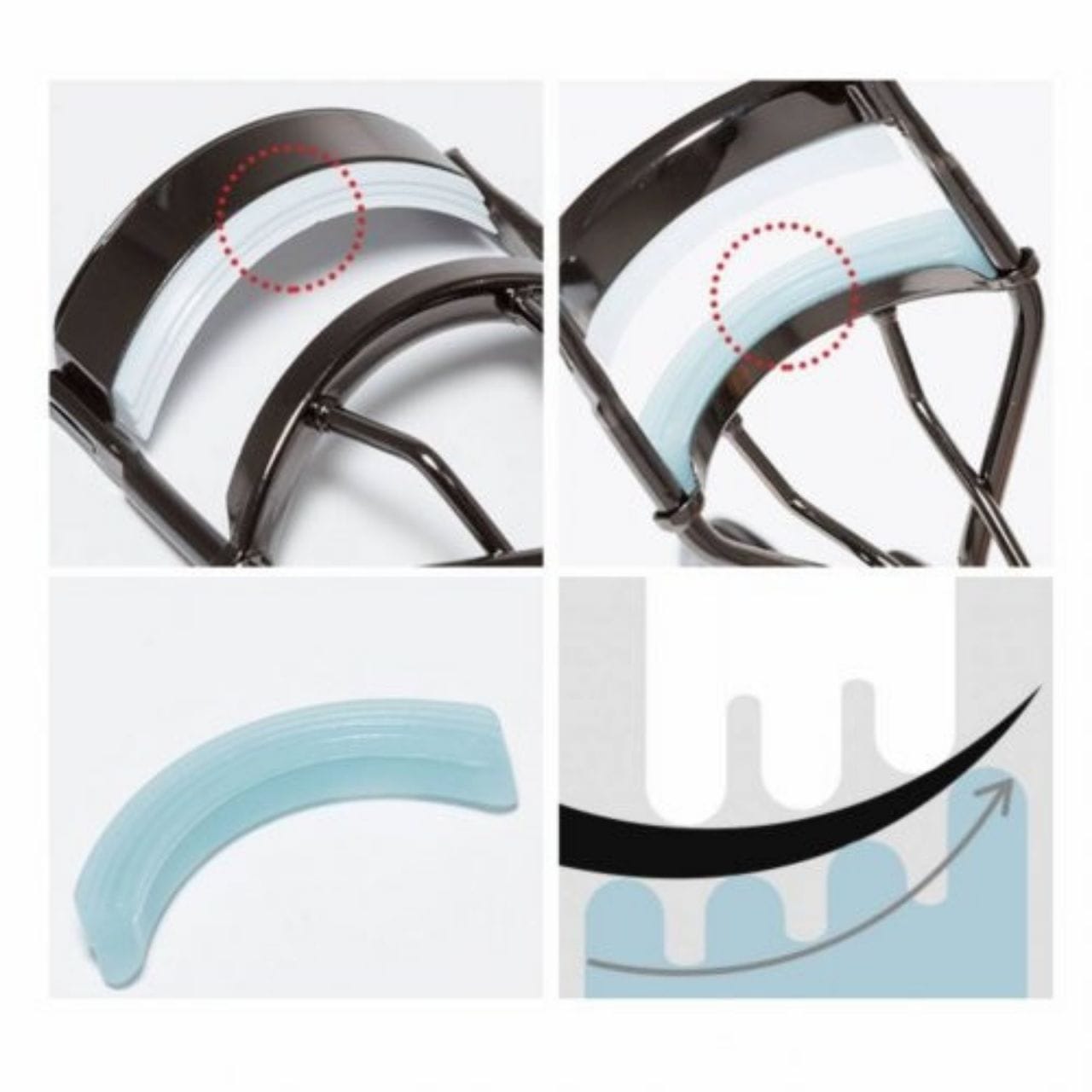 • Three-wave curler – curls lashes at three points, eliminating the risk of a right-angled bend.