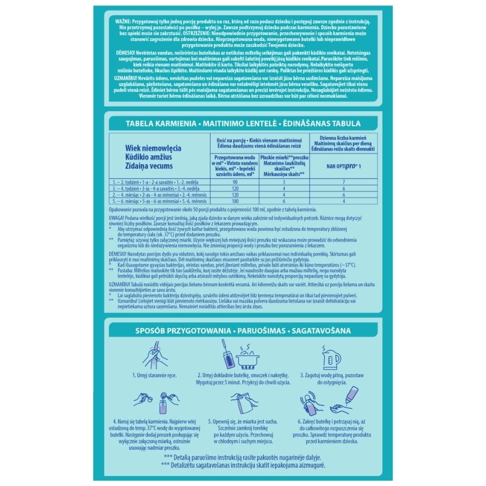 The package allows you to prepare approximately 50 portions of milk with a capacity of 100 ml, according to the feeding table.