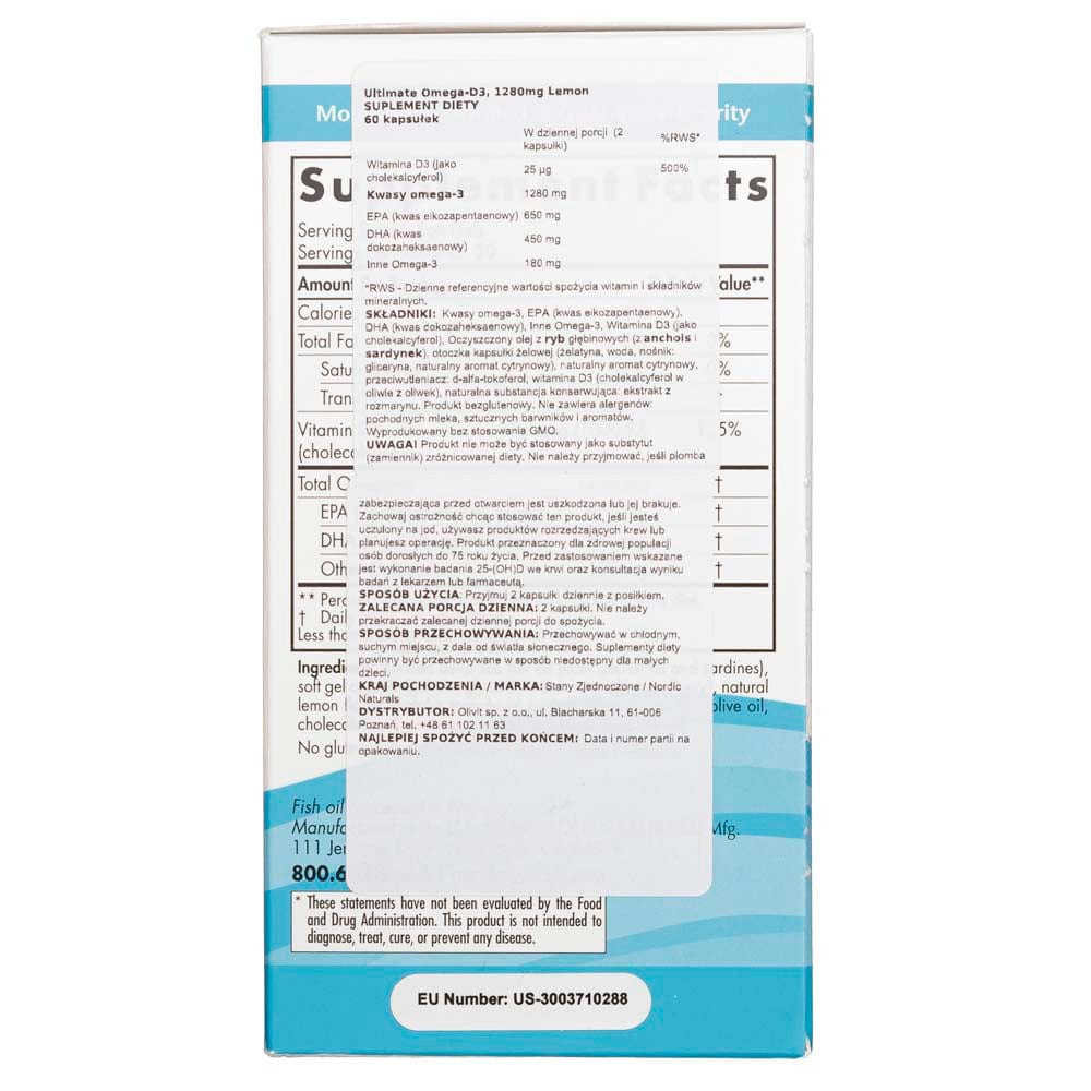 Nordic Naturals Ultimate Omega-D3, Lemon Flavor 250 mg - 60 Softgels