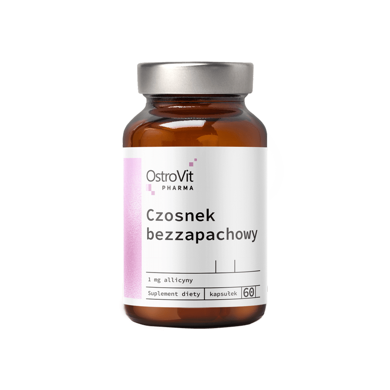 OstroVit Pharma Unscented Garlic is a dietary supplement in capsules, containing unscented oil from fresh garlic tubers. The supplement's ingredients may benefit cardiovascular health, physical and sexual performance, cognitive function, and overall immunity. The special unscented formula, strips it of its specific odor, making supplementation easier for those with particular sensory sensitivities.