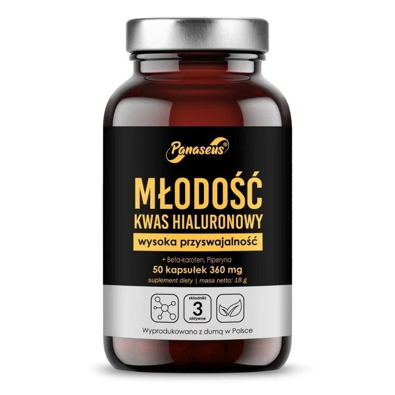 The Youth supplement from Panaseus is a combination of hyaluronic acid with additional active ingredients. Hyaluronic acid is a substance naturally found in the skin, eyes and joints. Its primary function is to retain water in the body's cells, which is why it is one of the most important building blocks of synovial fluid and vitreous cartilage.