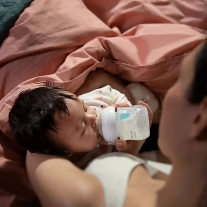 - During feeding, hold the bottle upright so that the AirFree vent works properly and keeps the teat filled with milk.