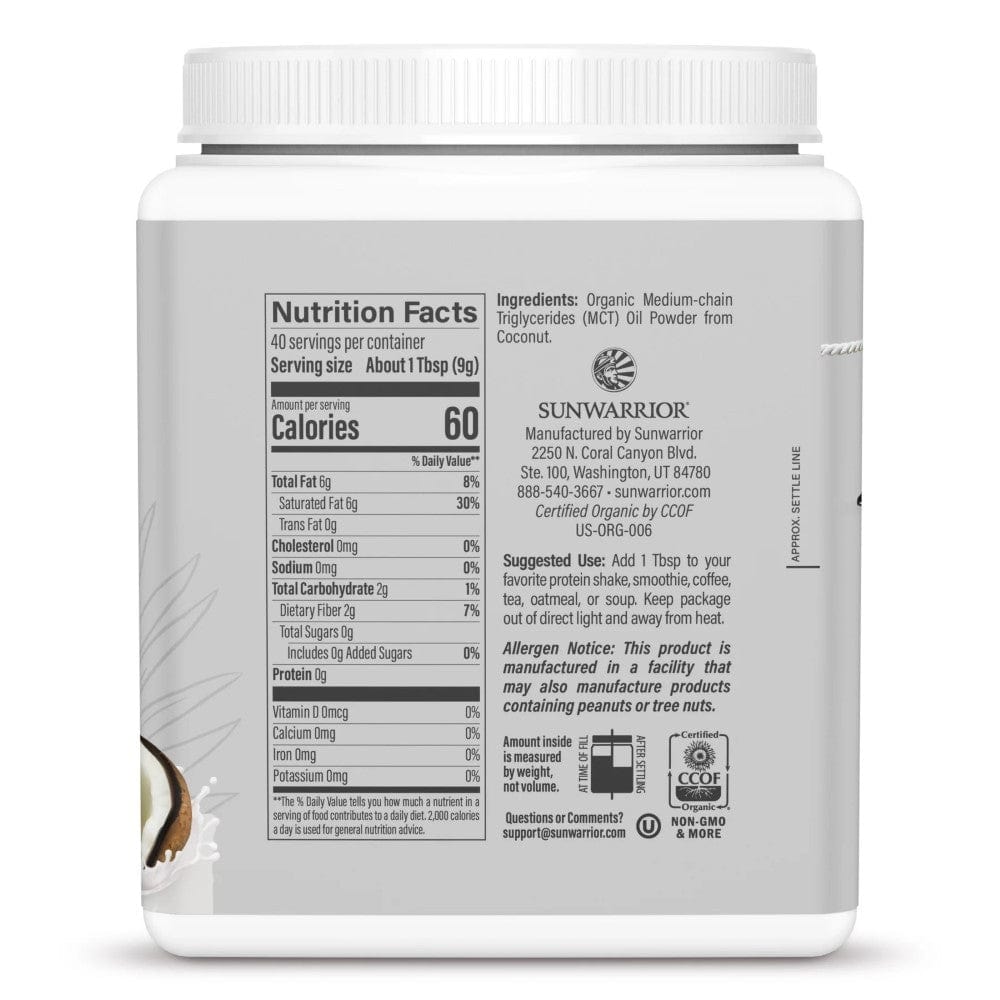 Sunwarrior Active MCT Oil is a powdered formula containing organic, powdered coconut oil. Vegan, without unnecessary additives and fillers.