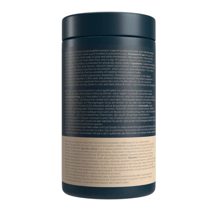Micronised creatine monohydrate is one of the purest and most effective forms of creatine. Regular use can help achieve better athletic performance, improve recovery and increase muscle strength. The product does not contain unnecessary additives such as sugar, gluten, lactose, preservatives or artificial colourings, which makes it an ideal choice for people who care about a healthy diet, including vegans.